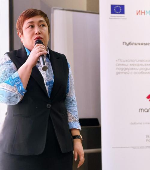 Өз сөзінде Айгуль Тулебаевна заманауи реабилитациялық тәсілдер, отбасыларды қолдау бағытындағы Орталықтың тәжірибесі, сондай-ақ балаларды оңалтудың ұлттық жүйесіне енгізіліп жатқан жаңа модельдер жөнінде баяндады. Сонымен бірге ата-аналарды кешенді қолдаудың маңыздылығын атап өтті, өйткені отбасының жалпы жағдайы баланың даму нәтижелеріне тікелей әсер етеді.